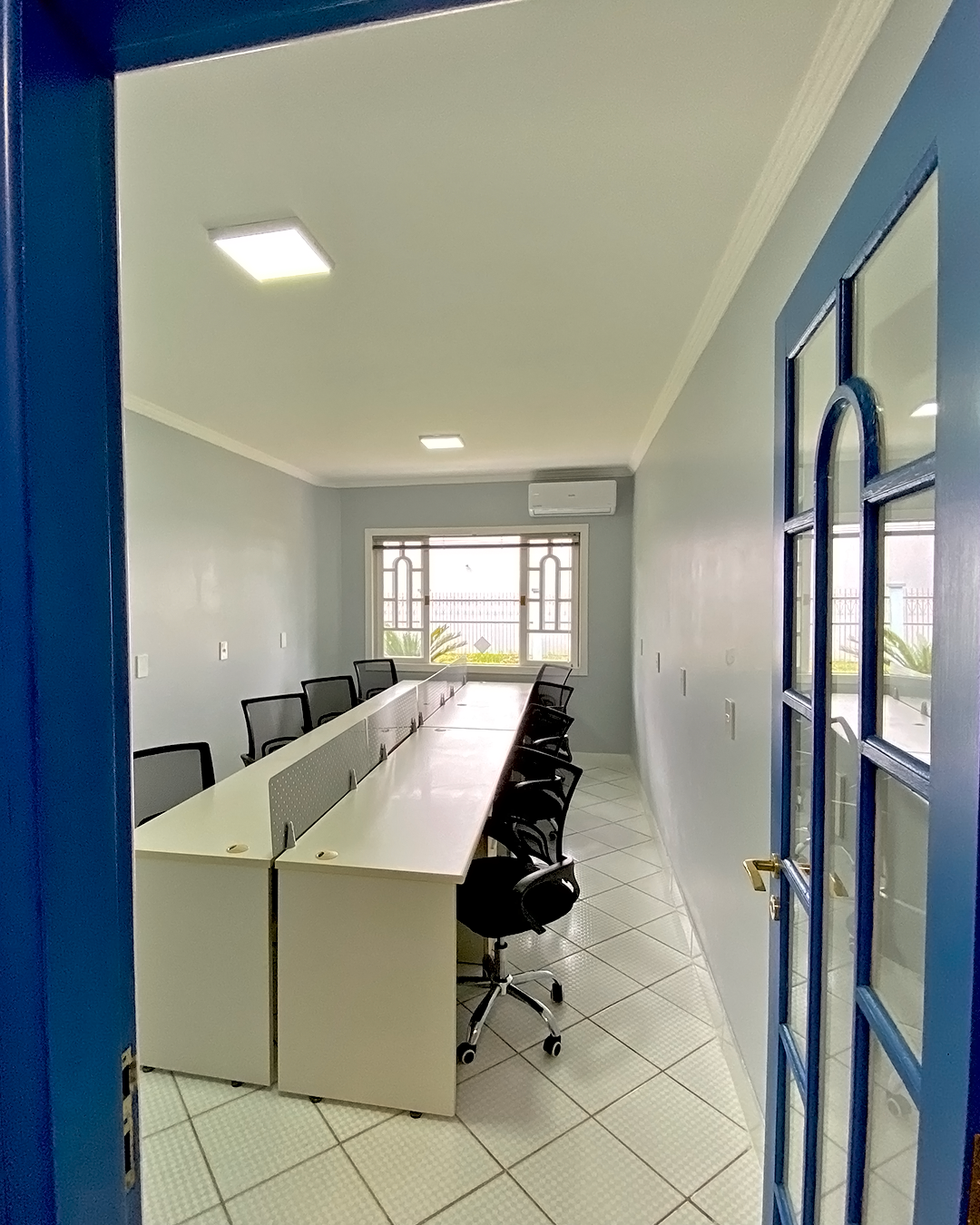 Bem-vindo ao Blue Coworking, o espaço planejado para que você se sinta em casa. Localizado no amplo Bairro Iririú, nossa casa oferece uma experiência única, com uma rua particular e estacionamento privativo, além de um exuberante jardim que faz parte do nosso cenário. Aqui, você encontrará uma variedade de serviços e espaços à sua disposição:
