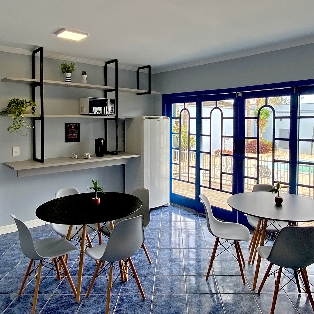 Uma área acolhedora para pausas, onde você pode desfrutar de café fresco e interagir com outros membros.