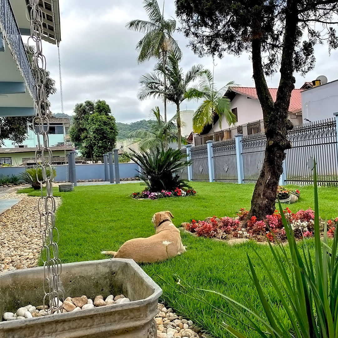 Nosso exuberante jardim oferece um ambiente ao ar livre onde você pode trabalhar, relaxar e se inspirar.